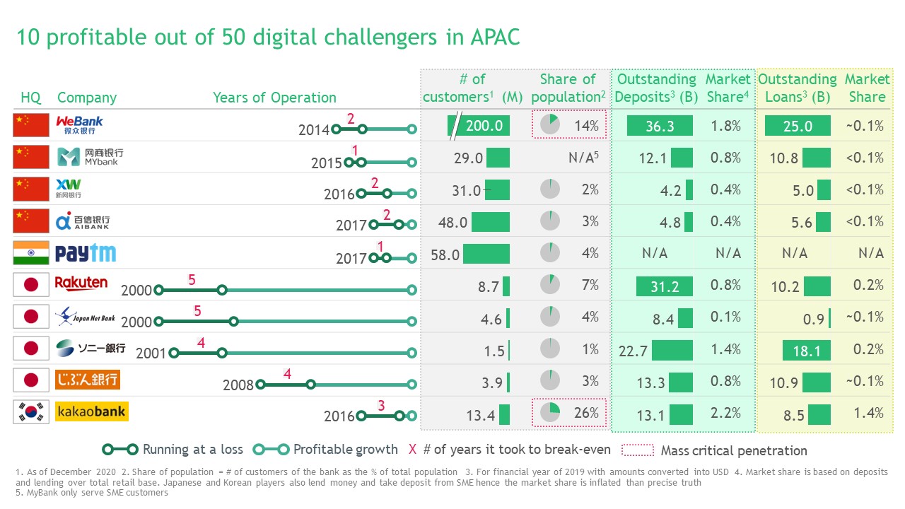 These four digital banks in South Korea and China—MyBank, WeBank, KBank, and Kakao Bank—are now all profitable. It was a story that other digital banks across the region are struggling to emulate.