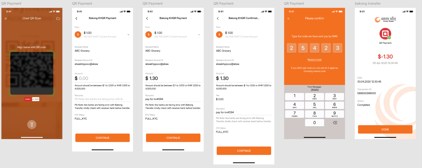 Throughout the project, BPC upgraded the bank's mobile application to Chief Mobile 3.0, which offers seamless, secure onboarding and biometric sign-in using Touch ID and Face ID, with interfaces in Khmer, English, and Chinese. Everyday financial services are now consolidated into a single app: KHQR/Bakong QR payments, instant transfers to bank accounts and wallets, bill payments, mobile top-ups, card linking (local, Visa, Mastercard), card controls, goal savings, and instant micro-loans, all supported by real-time integration with the previously implemented SmartVista card management system, live push notifications, reusable templates, and scheduled payments.