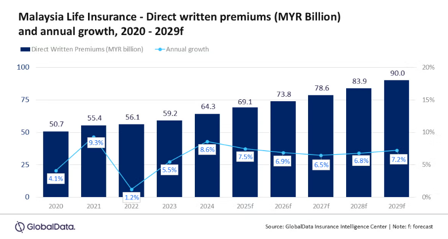 Malaysia’s life insurance market is expected to reach $20.4b in direct written premiums (DWP) by 2029, up from $15.6b in 2025, according to data from GlobalData.